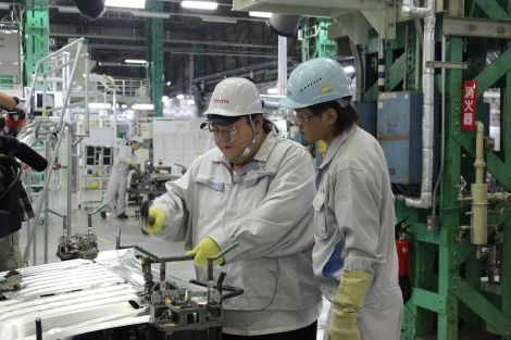 ここの工程でまっさきに目を引いたのは、女性従業員がキレイなこと。