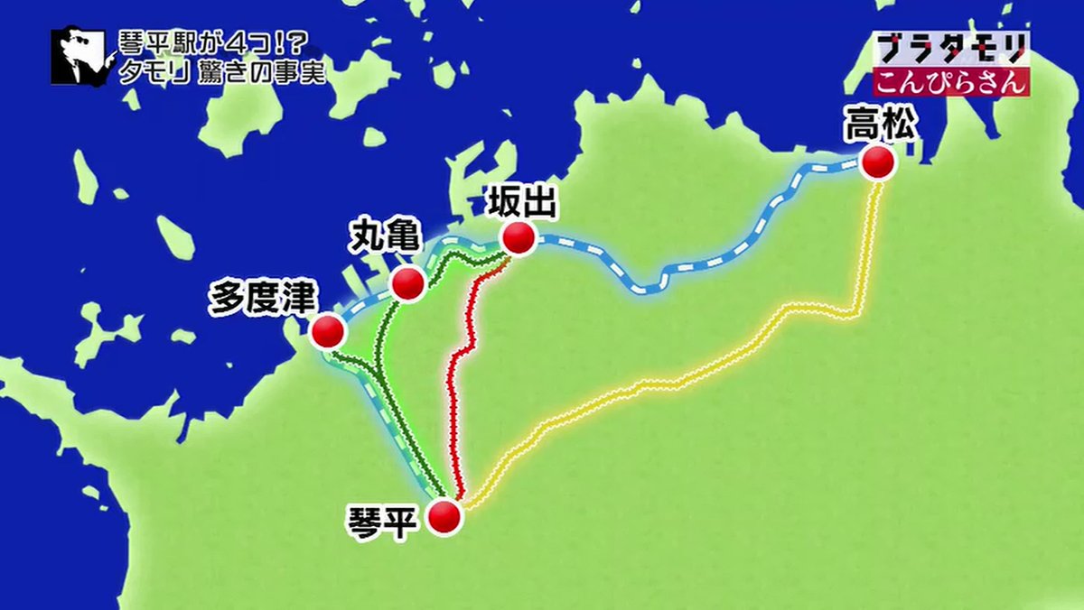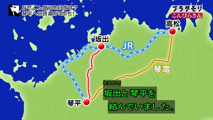 JRと琴電は高松と琴平を結び、もう一つの鉄道は坂出と琴平を結んでいた。