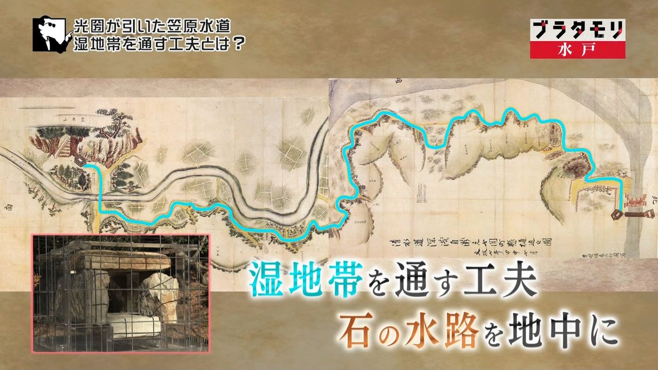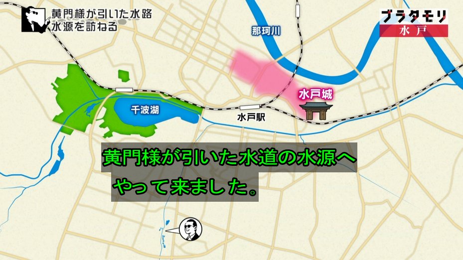 タモリさんたちは城下町から南に3キロほどの黄門様が引いた水道の水源に移動します。