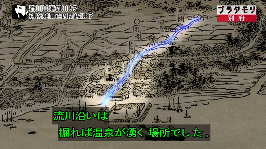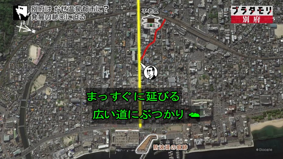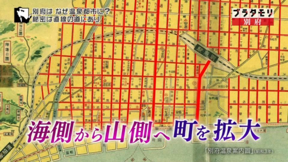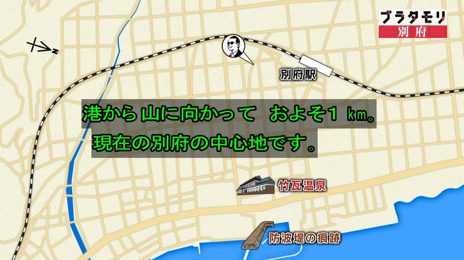 続いてタモリさんたちがやってきたのは、港から山に向かって約1㎞、現在の別府の中心地です。