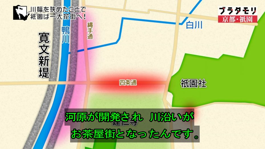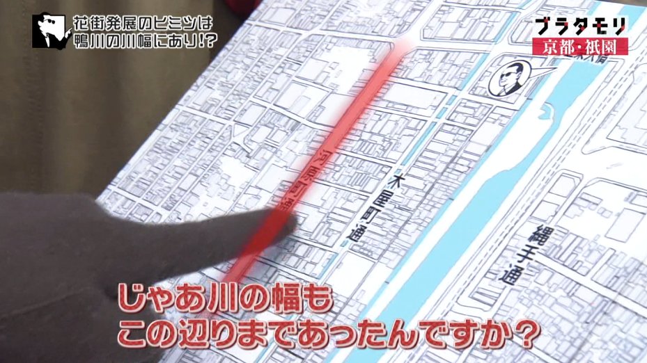 続いてタモリさんたちは江戸時代の花街の中心、四条通の北側にやってきました。
