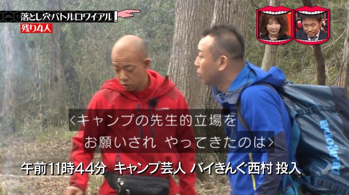 ここでキャンプの先生として、バイきんぐ西村がやってくる。