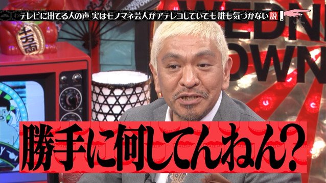 収録後、スタジオゲストの声はすべて物まね芸人によって差し替えられていました。