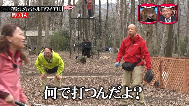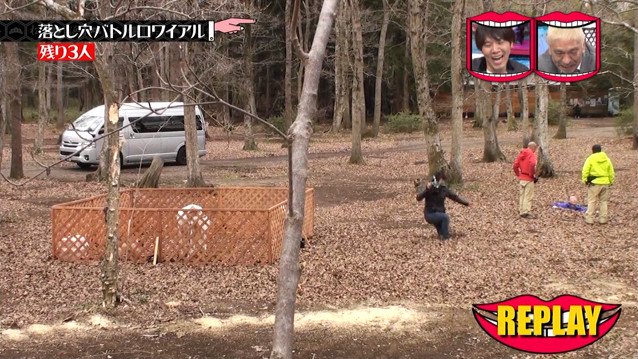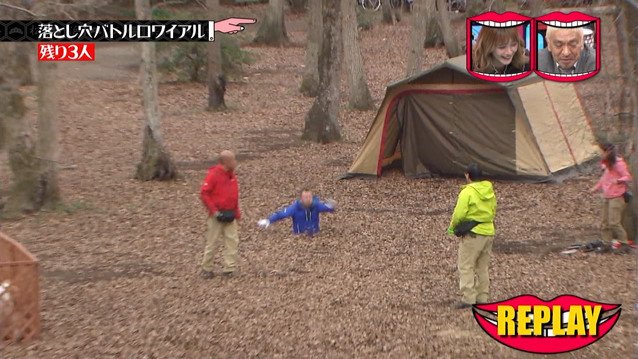 残る落とし穴はたかしの穴2つと松野とみやぞんの穴一つずつ。
