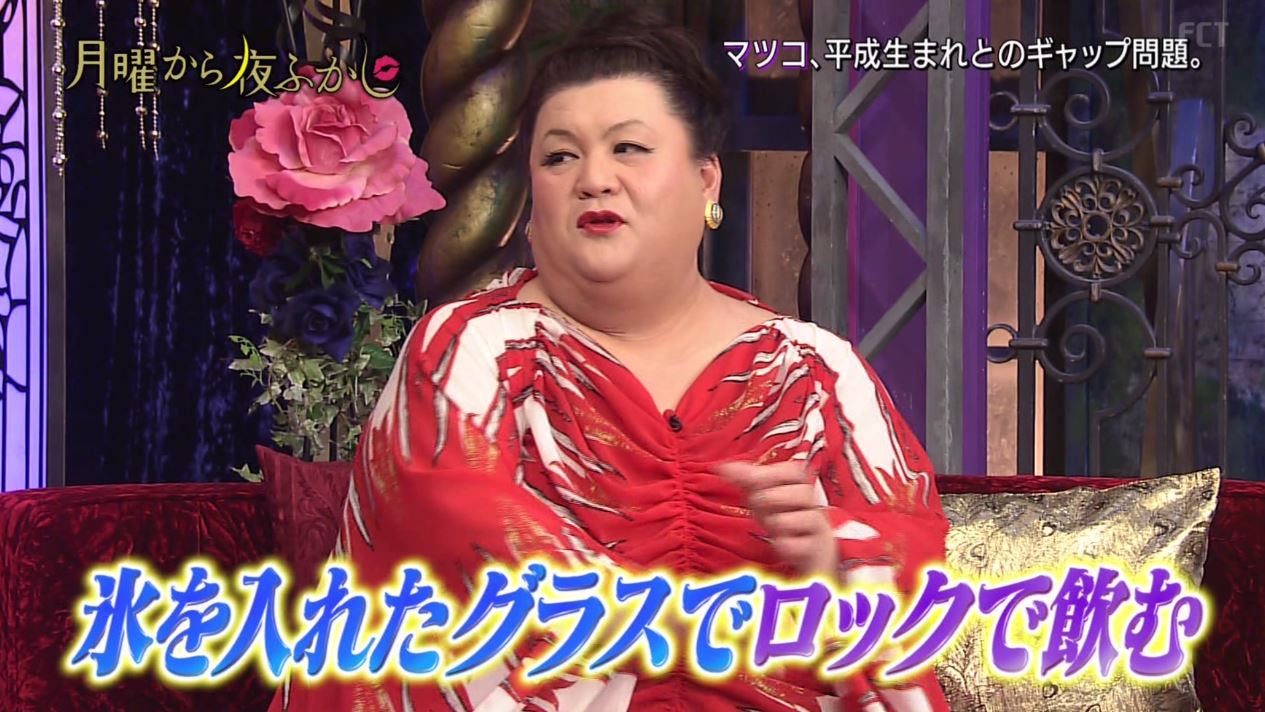 モモ缶のシロップをロックで飲むマツコ。