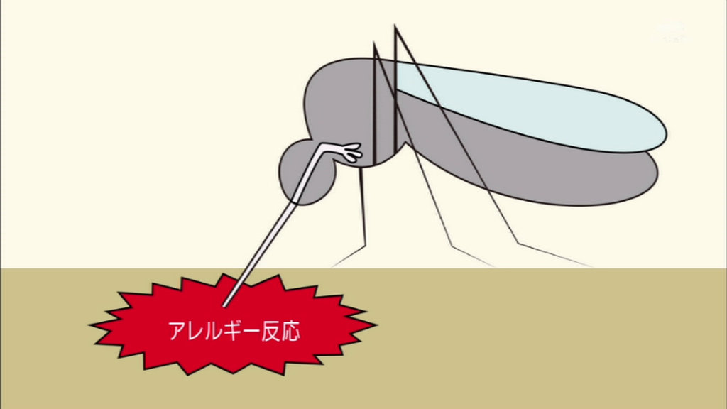 生まれた直後はアレルギー反応が出ないが、何度も刺されるとアレルギー反応(かゆみ)が出るようになる。