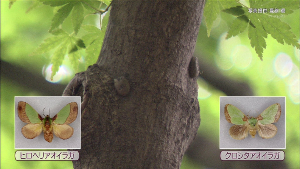 おそらくヒロヘリアオイラガとクロシタアオイラガの繭。