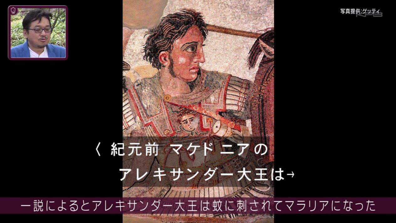 アレキサンダー大王は蚊に刺されてマラリアになった。