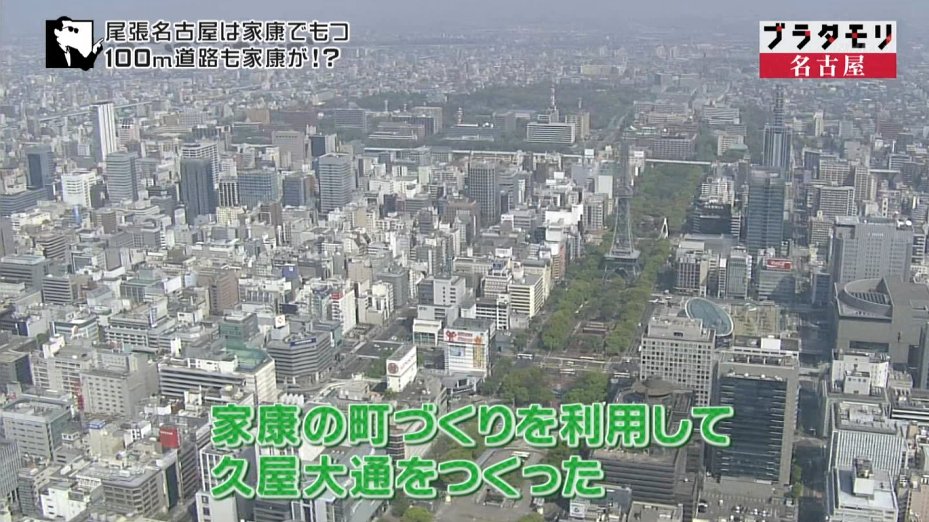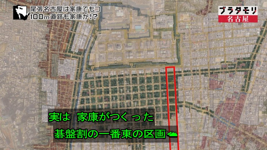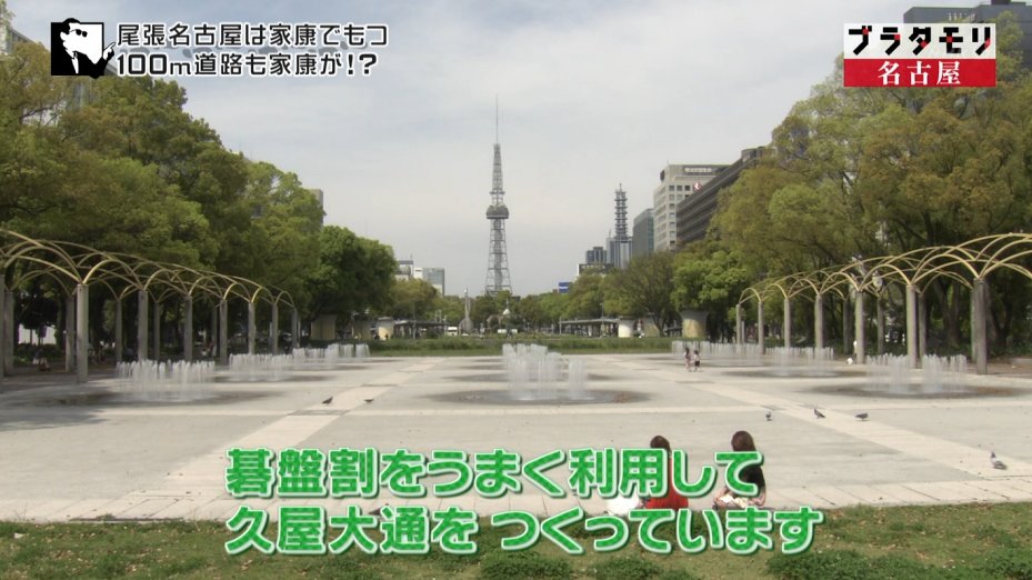 久屋大通は家康が作った碁盤割の一番東の区画を利用している。