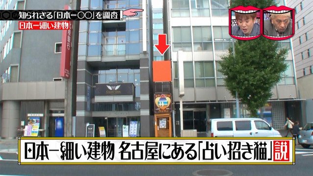 日本一細い建物 名古屋にある「占い招き猫」説
