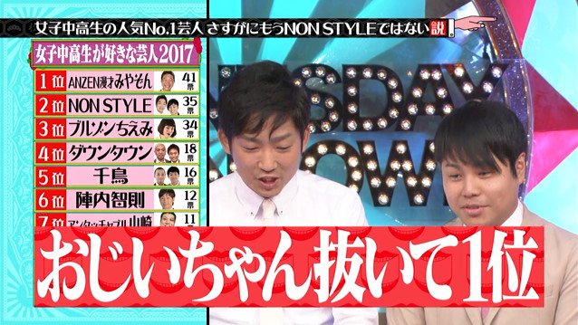 コンビとしては、NONSTYLEはおじいちゃんを抜いて1位w