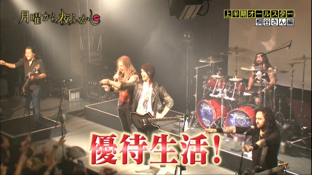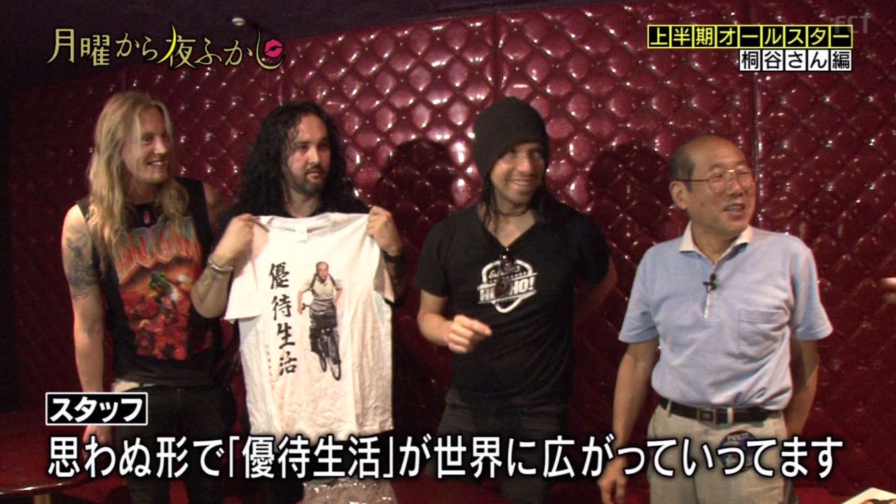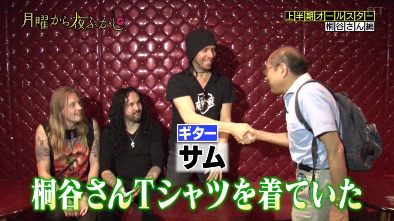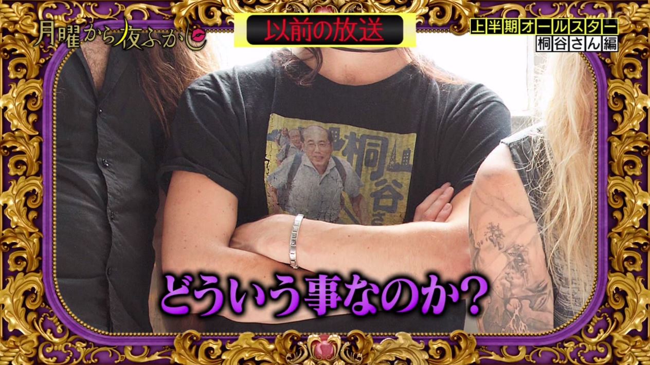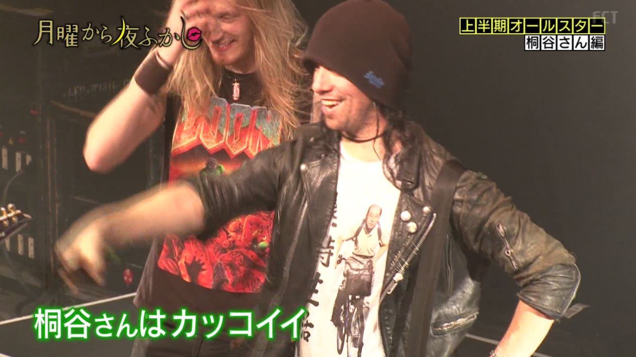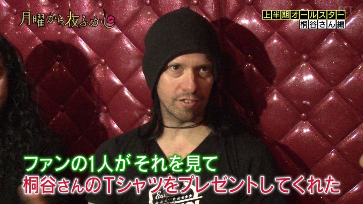 それをギターに貼って演奏していたら、ファンが桐谷さんTシャツをプレゼントしてくれた、といういきさつだった。
