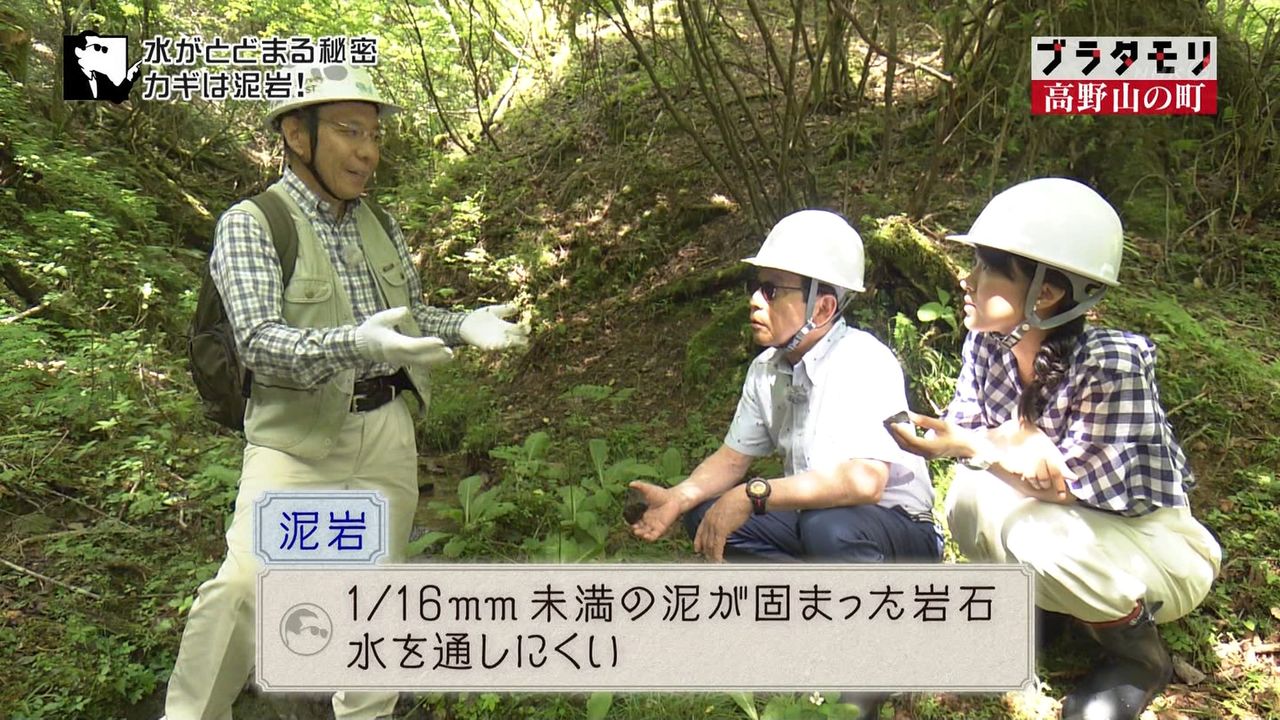 泥岩がお盆のような形になって、高野山の水が下に染みこむのを止めていた。