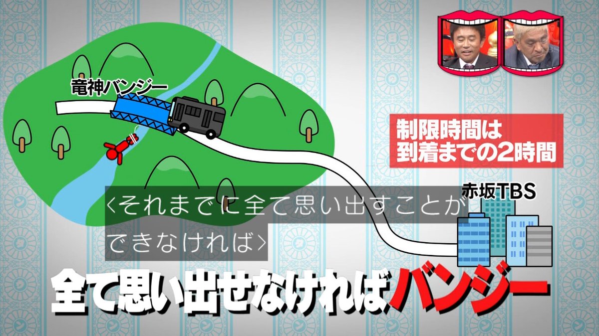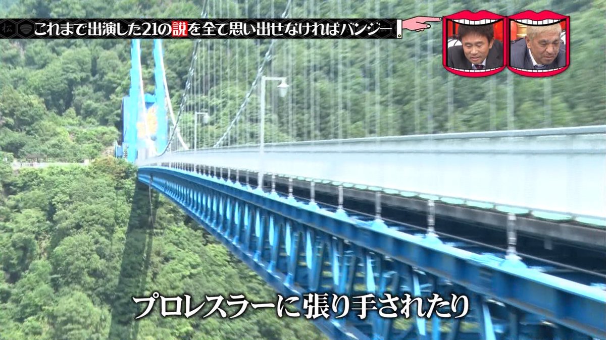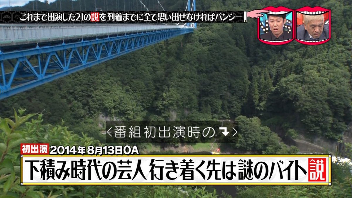 現場に着くまでに今まで出演した企画の内容21個をすべて思い出せれば、バンジーは免除と言われる。