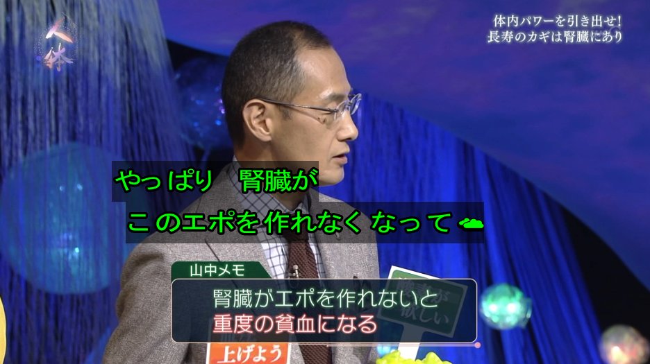 酸素が足りなくなると腎臓が反応し、ある物質を出すことで体の中を変えてしまう。