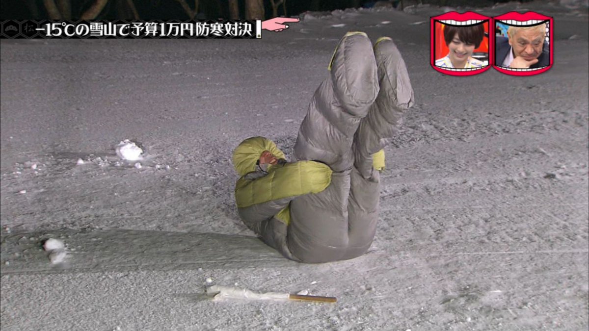 西村は着る寝袋のみで勝負。