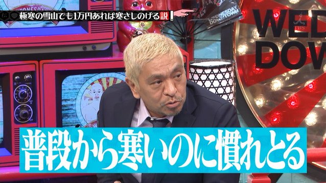 極地の冒険家とか家電芸人とか皮下脂肪が異常に厚い人(デブ)とか、いろいろバリエーションありそう。