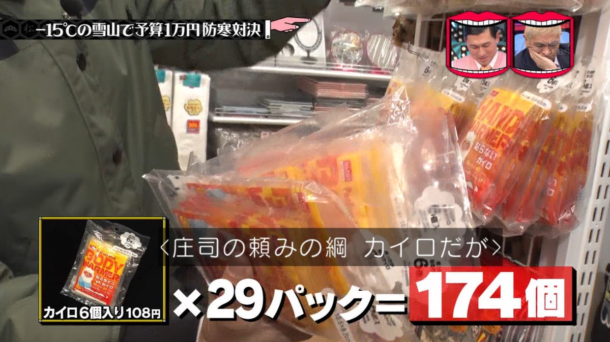 庄司は使い捨てカイロを防寒のメインにするつもりで174個買っていた。
