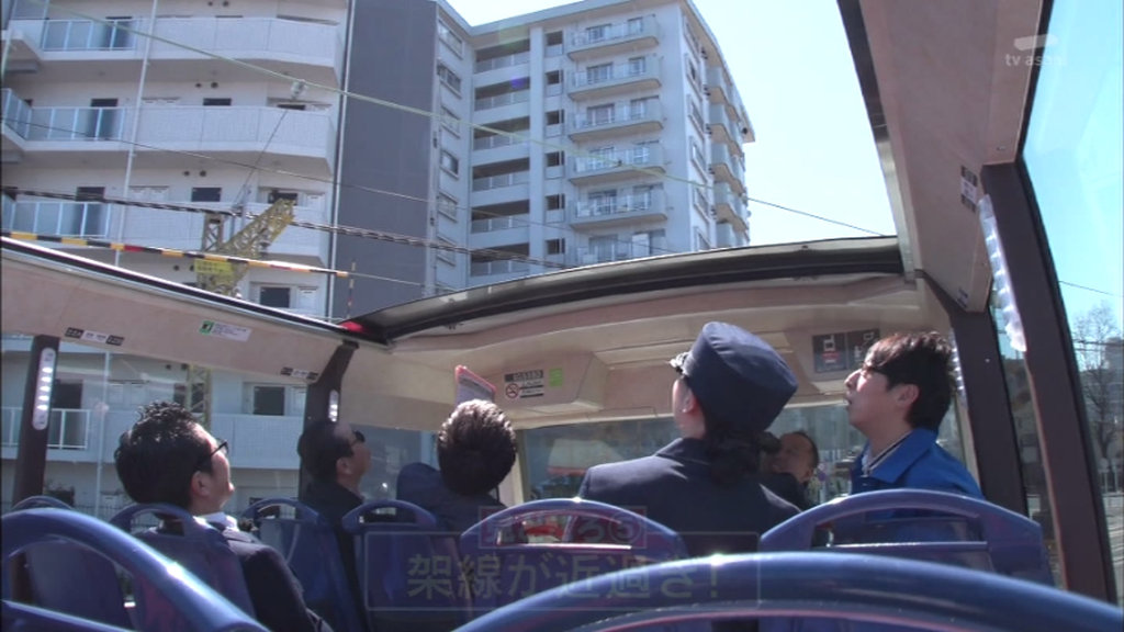 オープントップなので架線が間近に見える。