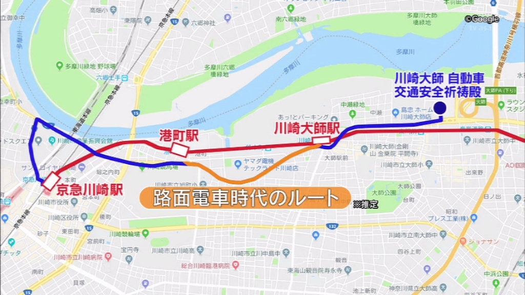 創業当時の路面電車のルートを走ります。