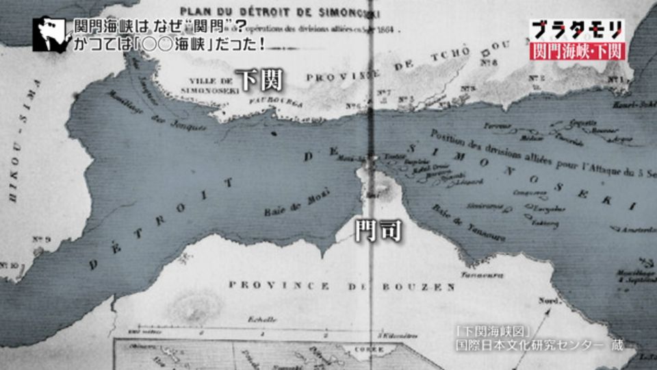 1866年にフランスで描かれた関門海峡の絵図。