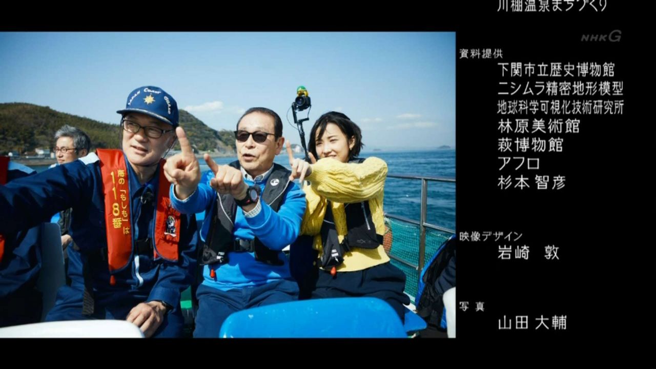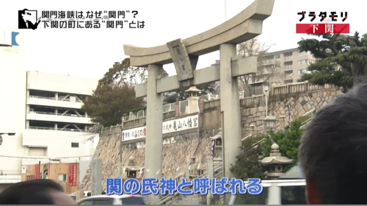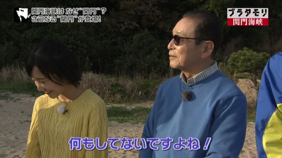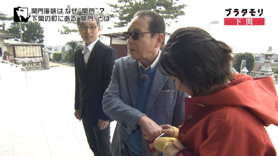 タモリさんたちは関門海峡の成り立ちを知るために下関側の高台(火の山)にやってきました。