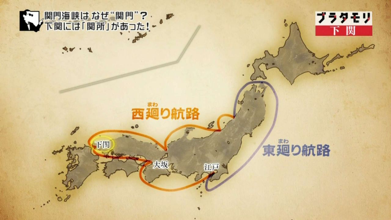 江戸時代に開発された西廻り航路で、多くの船が下関を通るようになった。