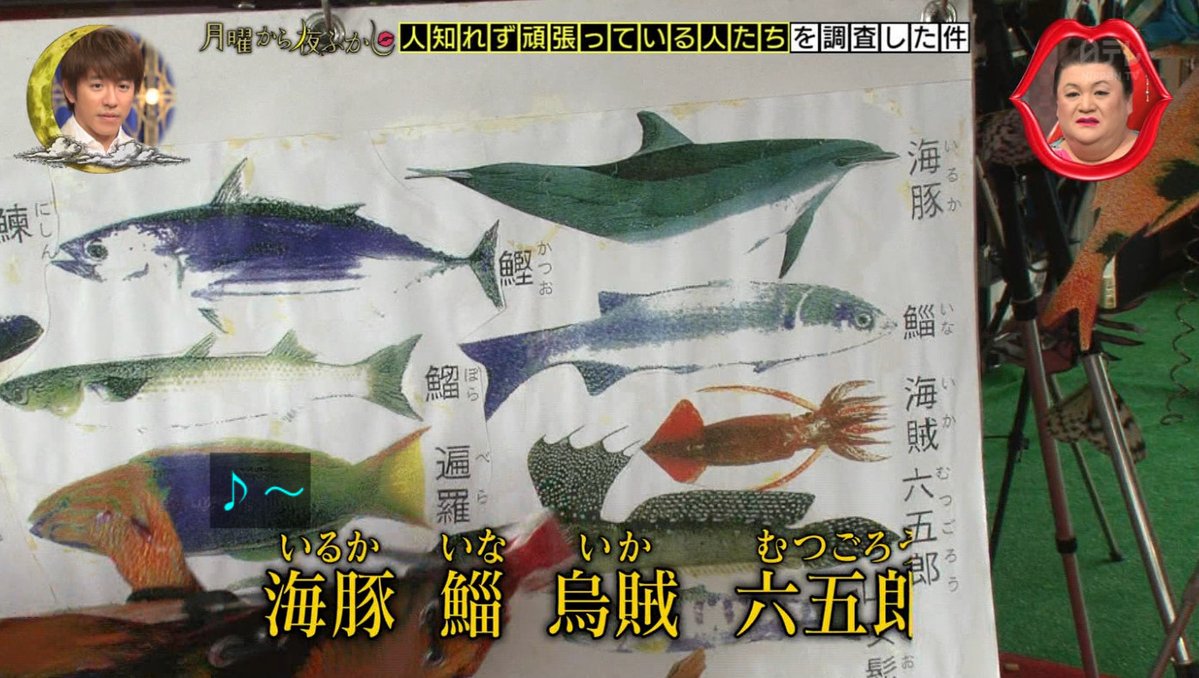 オリジナルの音楽に合わせて魚の名前が紹介され、