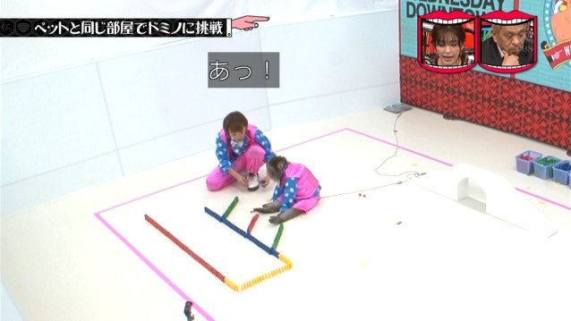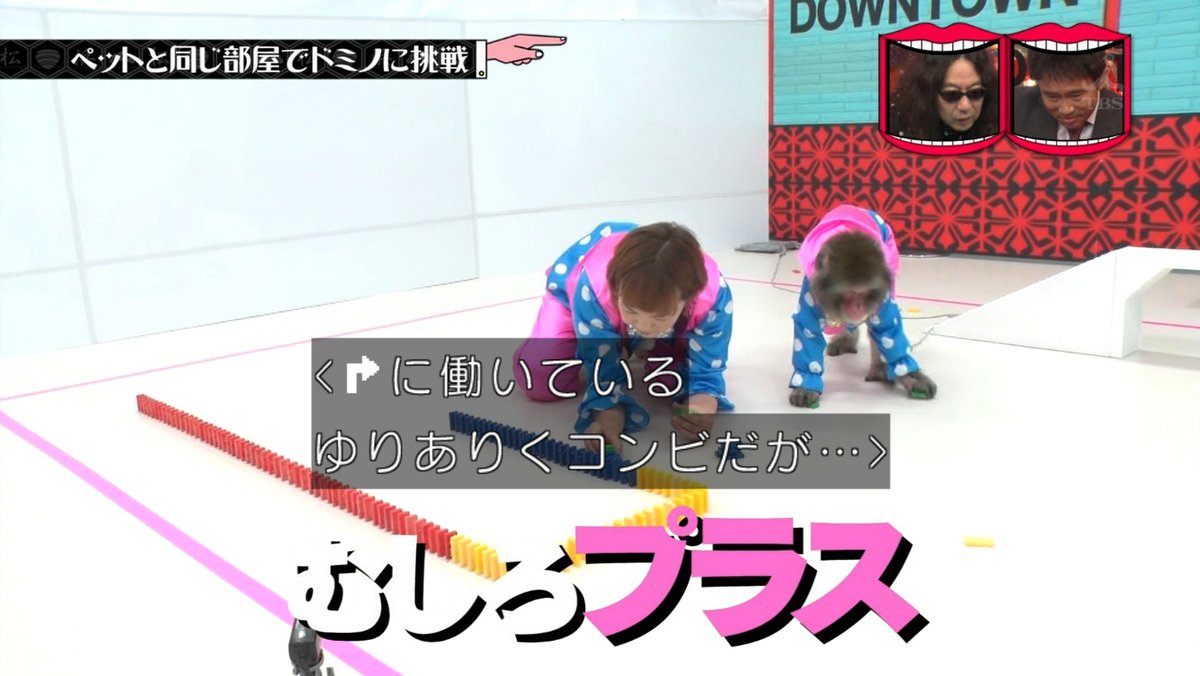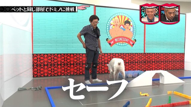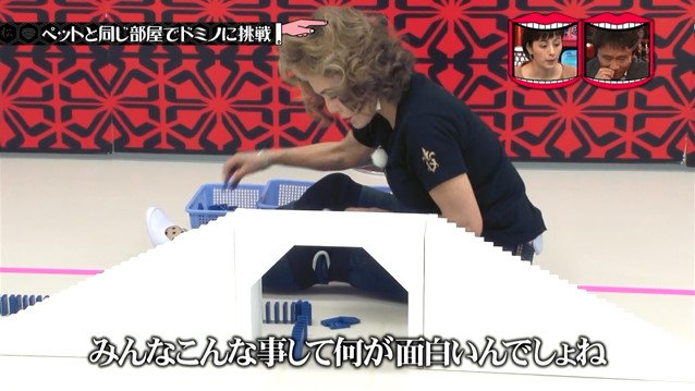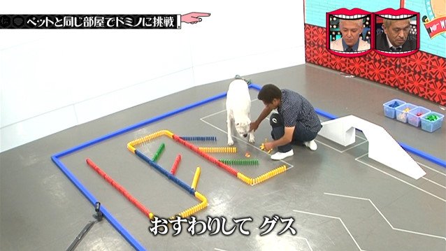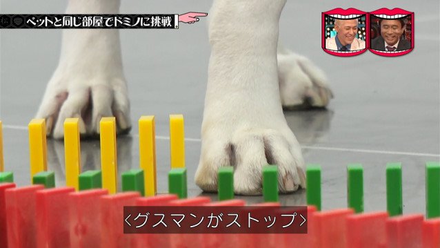 前脚をニューッと伸ばしてドミノを倒すグスマンw