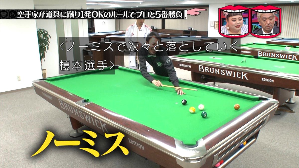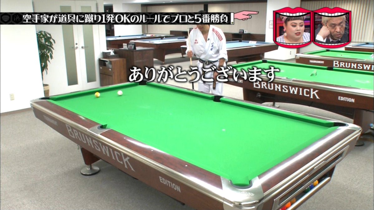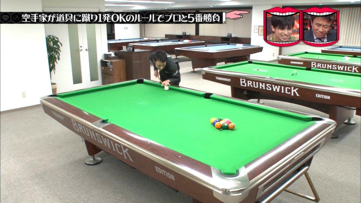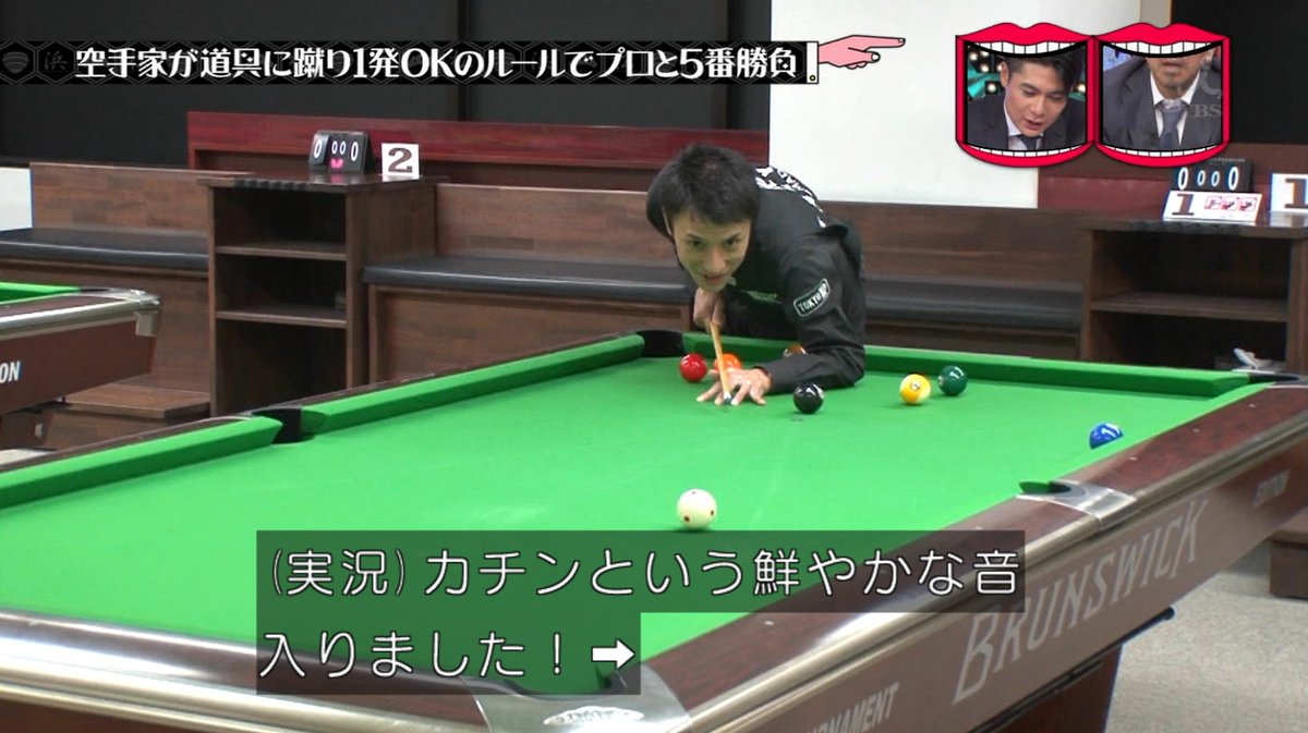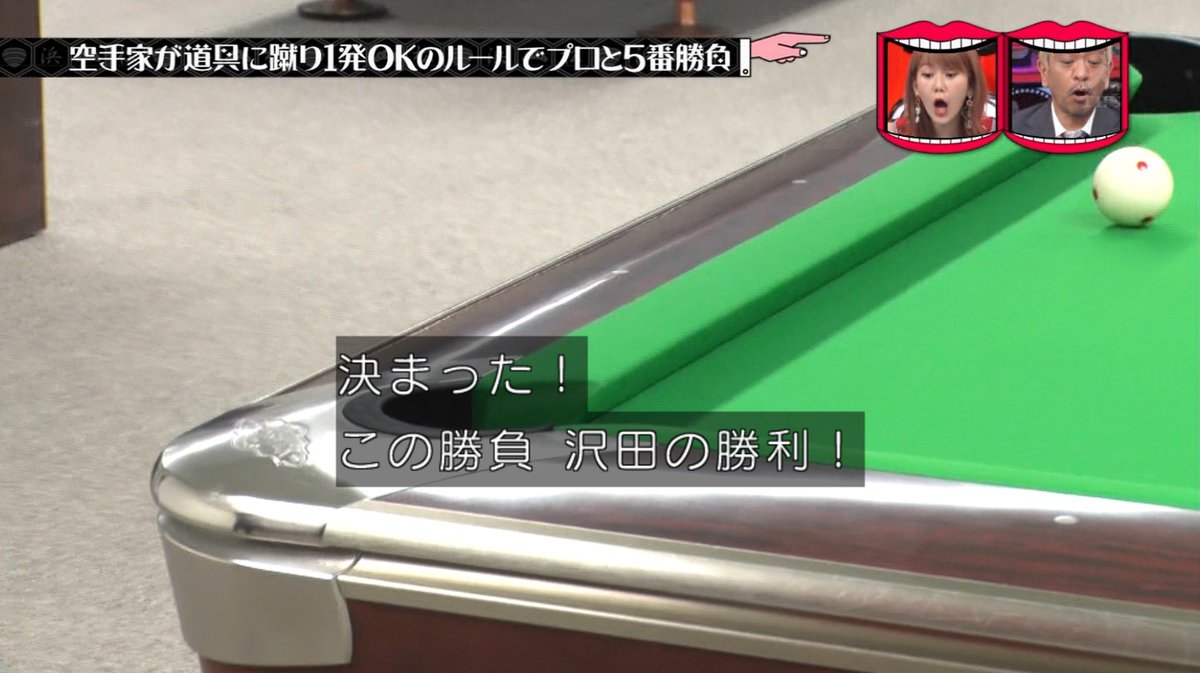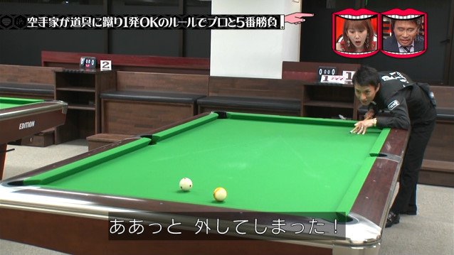 キューに蹴りを入れる空手家沢田。