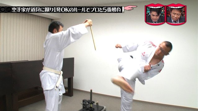 水曜日のダウンタウン 9月12日放送~空手家 vs 棒を使う競技のプロ 空手家が道具に一発蹴りを入れていいルールならいい勝負になる説②