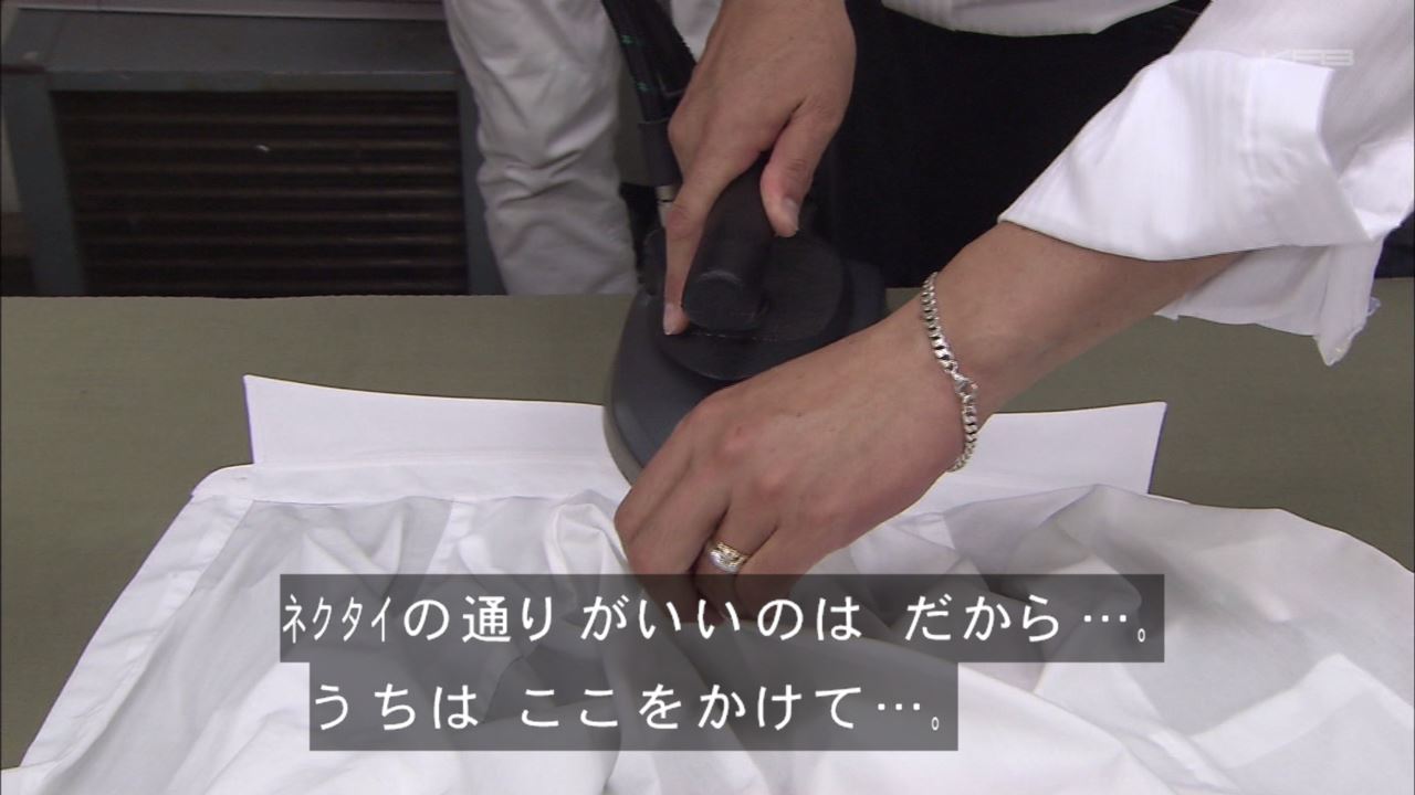 手仕上げだと、襟の裏側にアイロンをかける一手間でネクタイの滑りが良くなる。