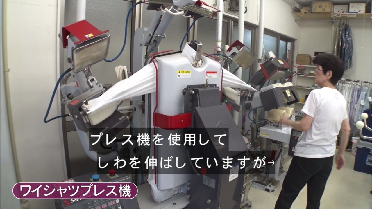 一般的にYシャツはプレス機を使用してシワを伸ばす。