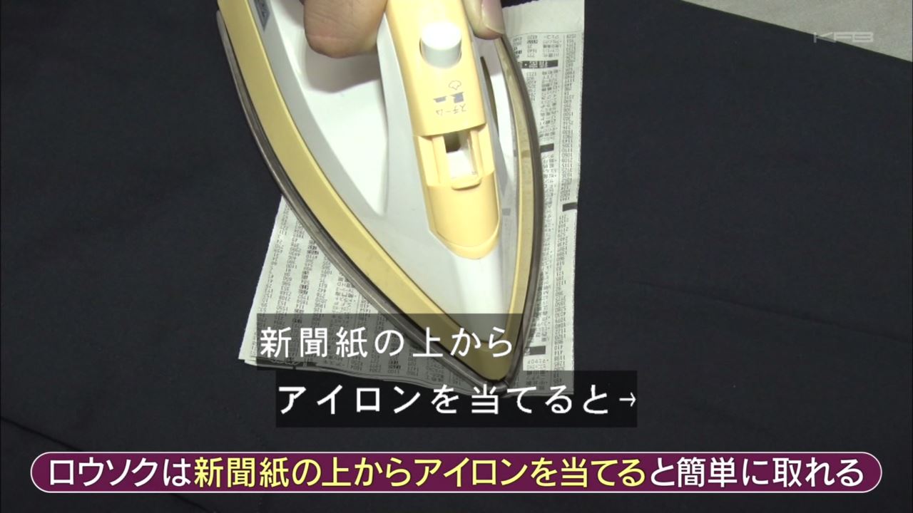 ロウソクは新聞紙の上からアイロンを当てると簡単に取れる。