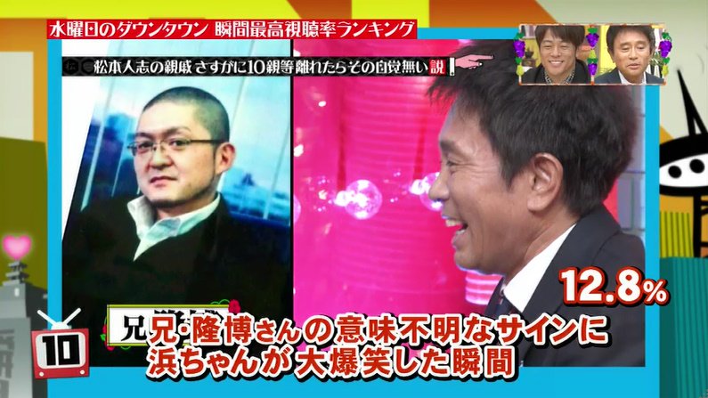 「水曜日のダウンタウン」631説の中から、瞬間最高視聴率ランキングBEST10を発表します。