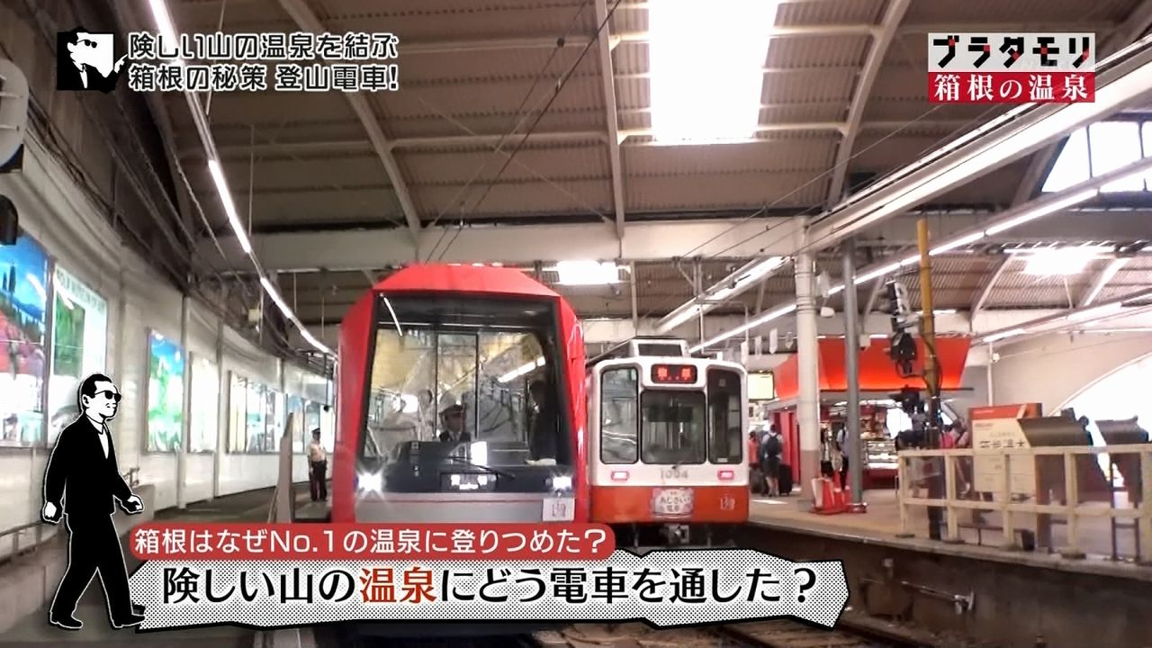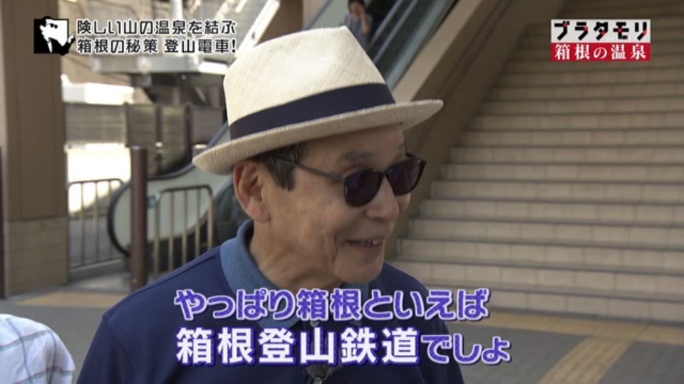 タモリさんが続いてやってきたのは、登山電車がある箱根湯本駅。