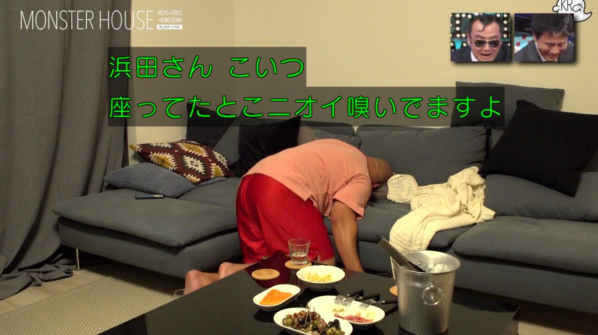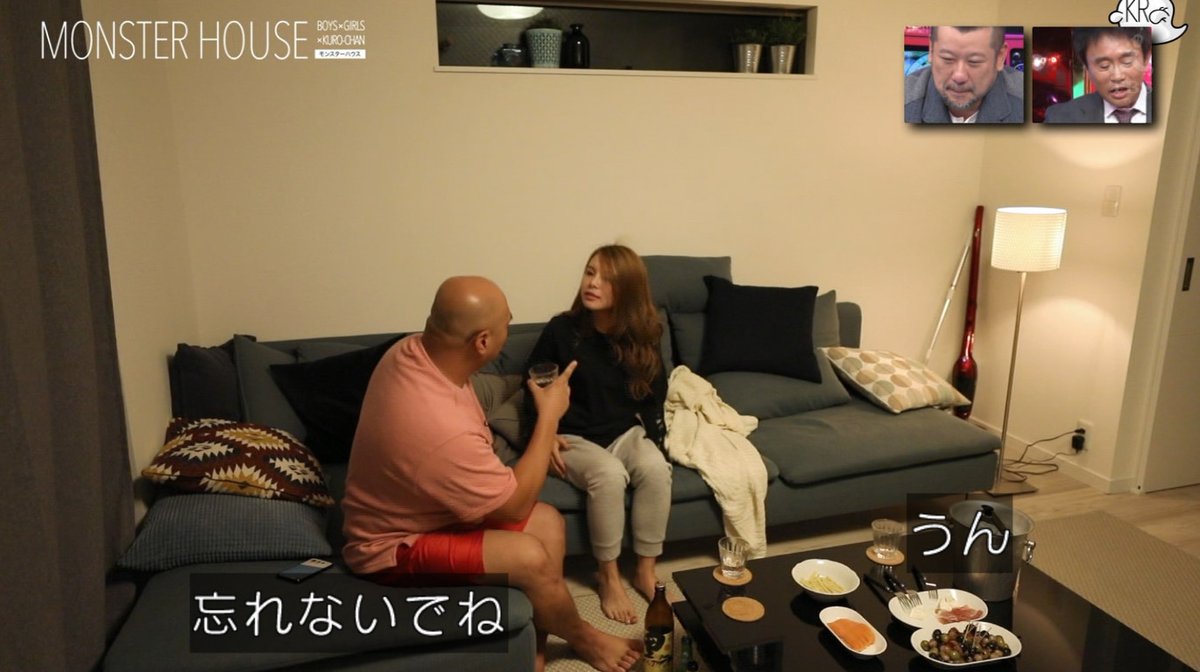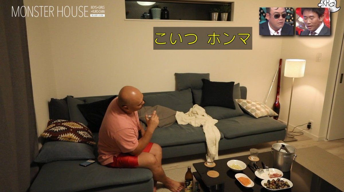 クロちゃん、蘭ちゃん、サノケン(佐野健太)がリビングルームで宅飲み。