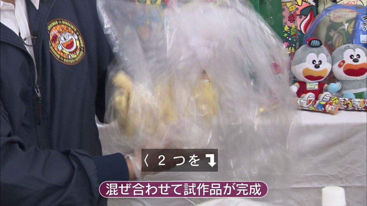 ビニール袋にプレーンの棒とフレーバー粉末を入れてシャカシャカ。