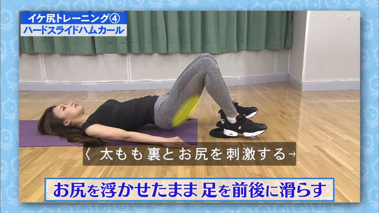 お尻を浮かせたまま足を前後に滑らす(ハードスライドハムカール)。