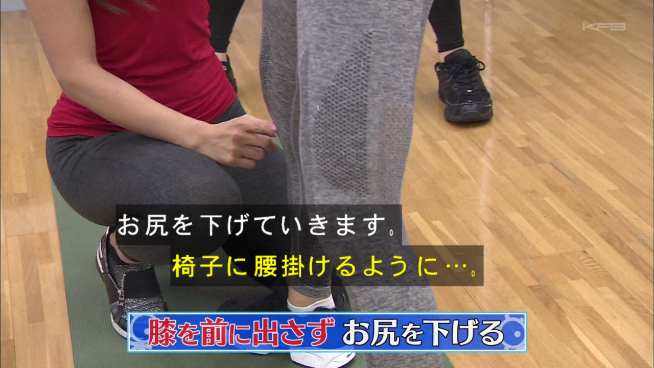 まっすぐ立ち上がると前ももが鍛えられてしまうので、お尻から上げる。