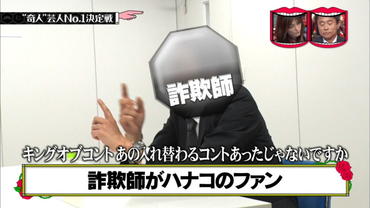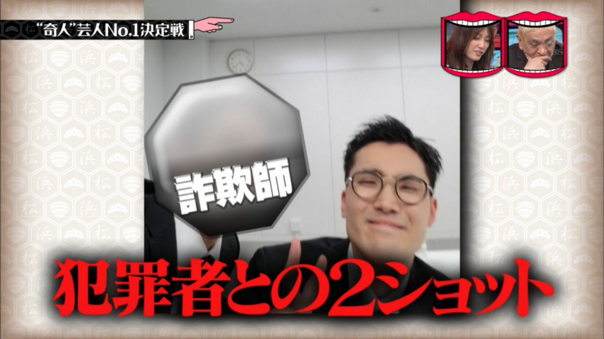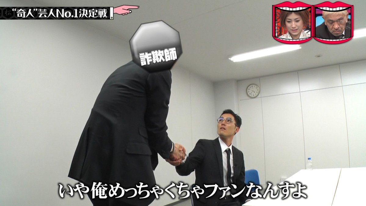 せんべいを食べ始めるふてぶてしい詐欺師。