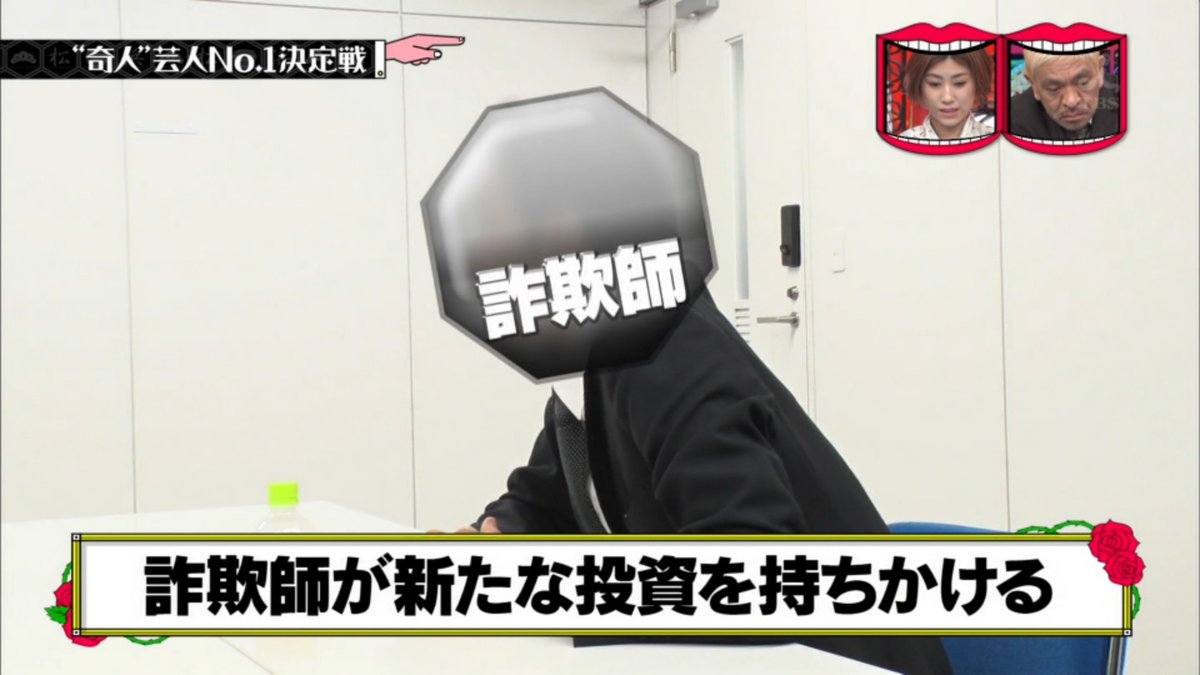 トイレから戻った被害者に性懲りもなく怪しい投資話(未公開の仮想通貨)を持ちかける詐欺師。