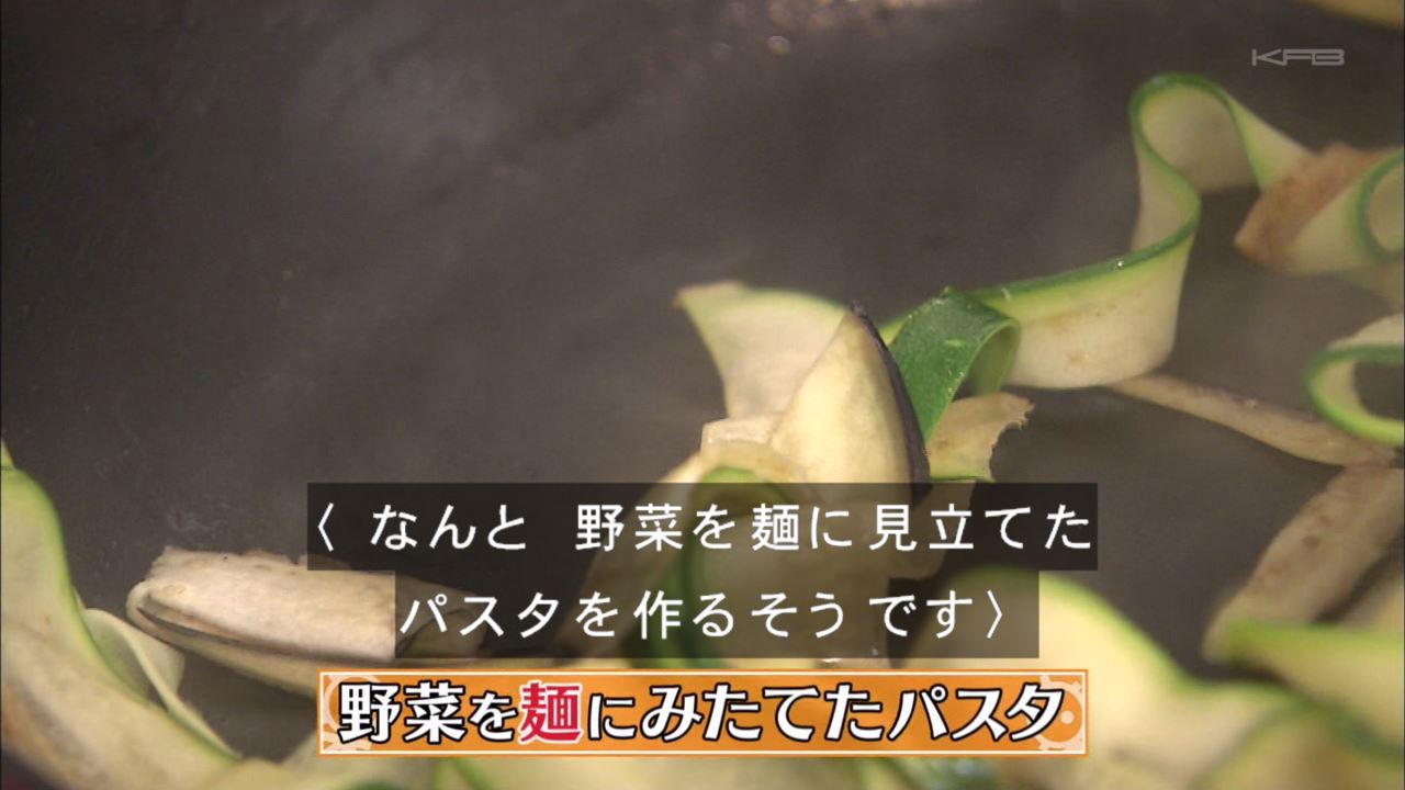 水田は野菜を麺に見立てたパスタを作る。