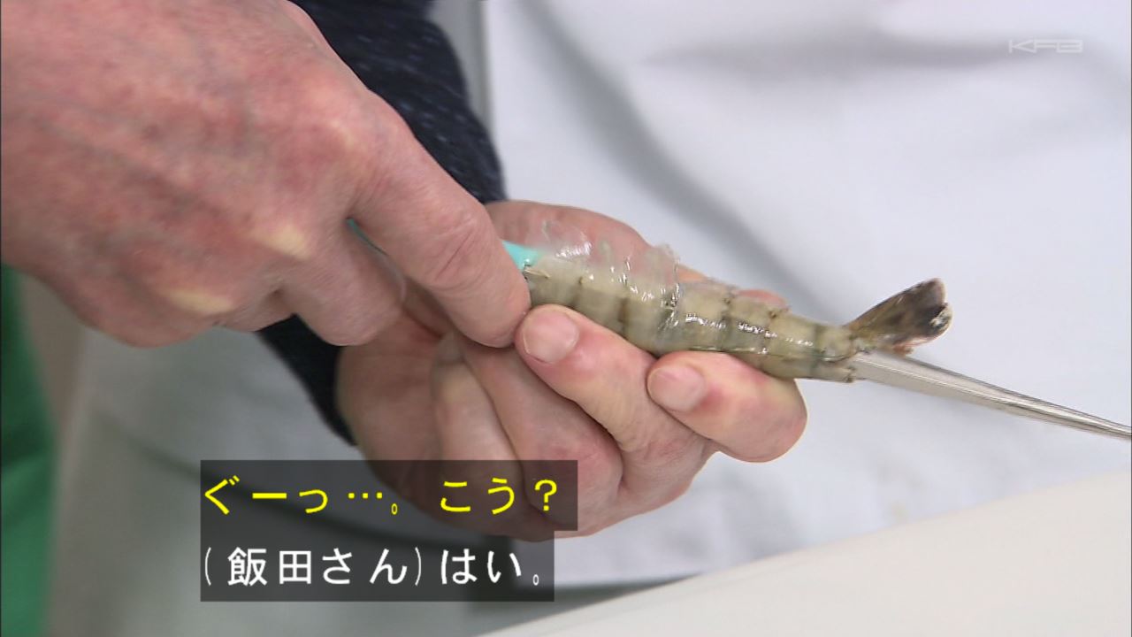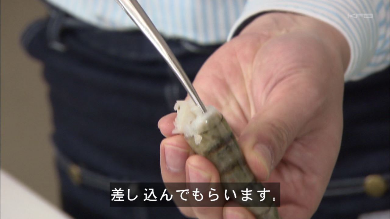 エビの背中に沿って刃を差し込む。