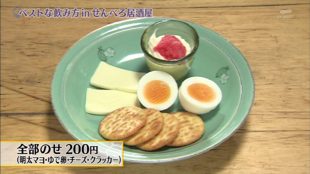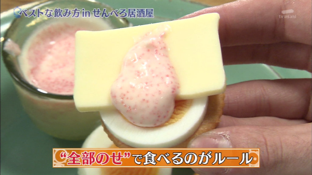 クラッカーにゆで卵、チーズ、明太マヨを全部のせて食べるのがルール。