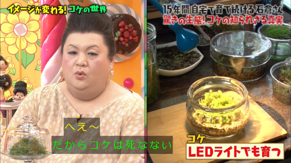 コケは光合成をするので日光は必要だが、LEDライトでも育つ。