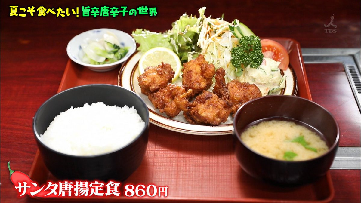 栃木三鷹を使ったサンタ唐揚定食。
