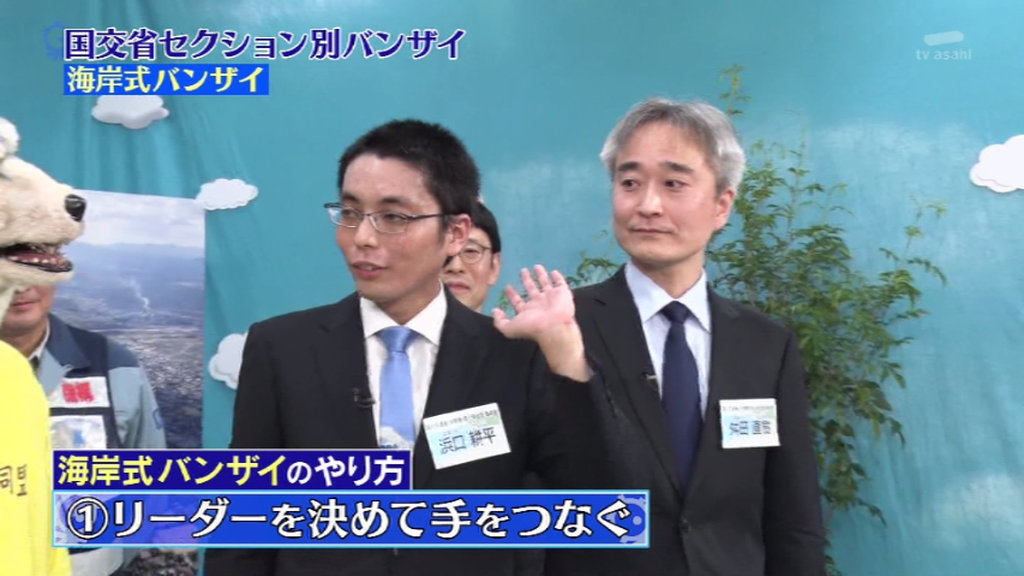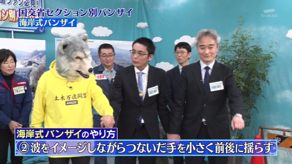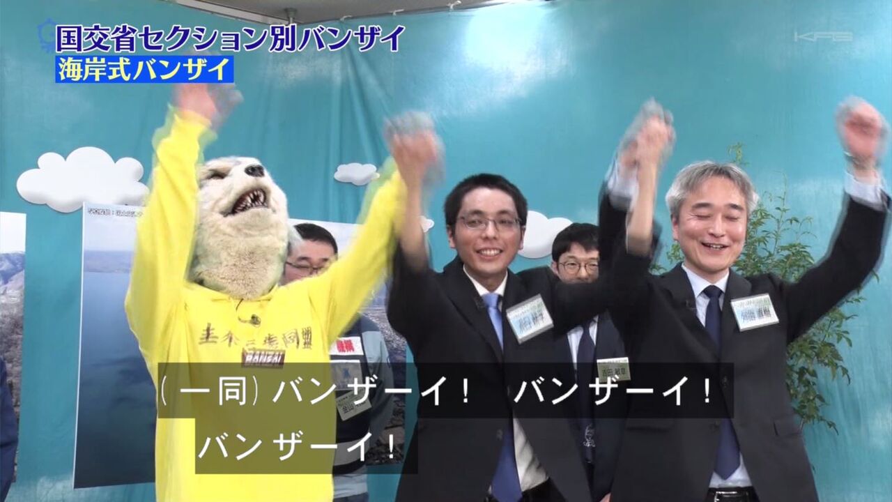 今回は国交省のダム・海岸・下水道の職員の方々と盛大にバンザイをし続けます。