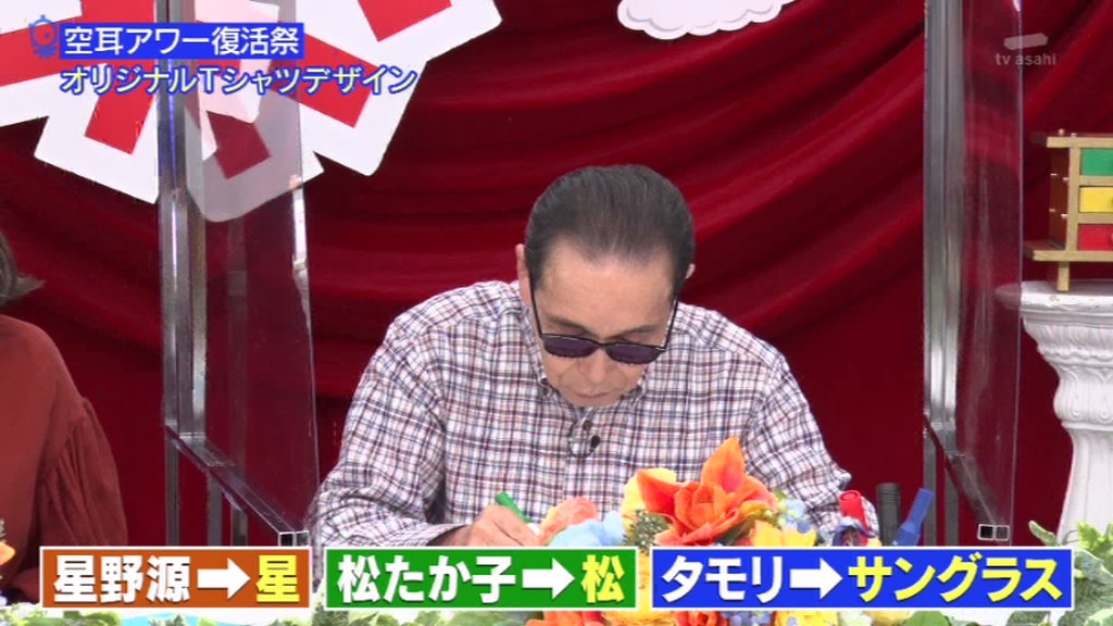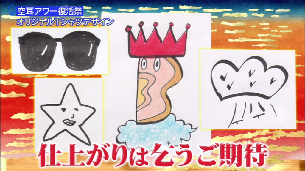 ベースデザインにタモリとゲストたちが指定されたモチーフを描き足します。