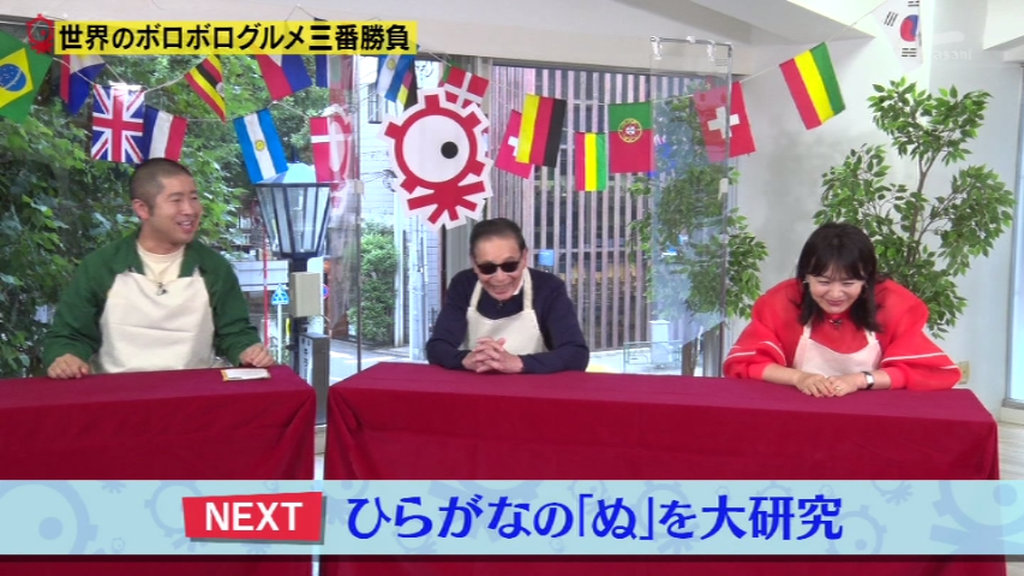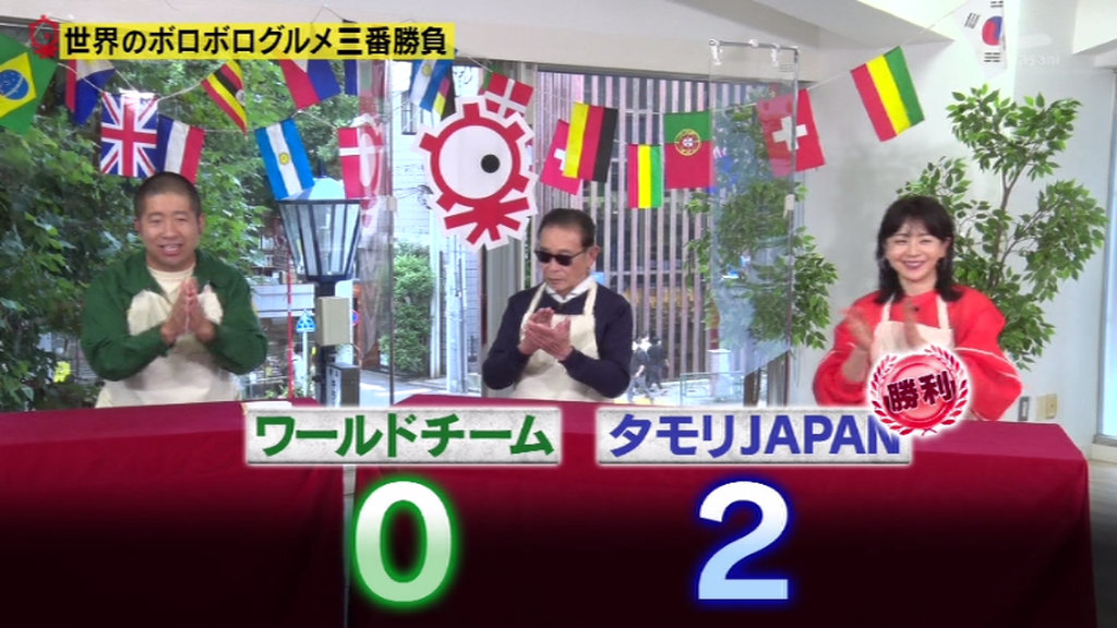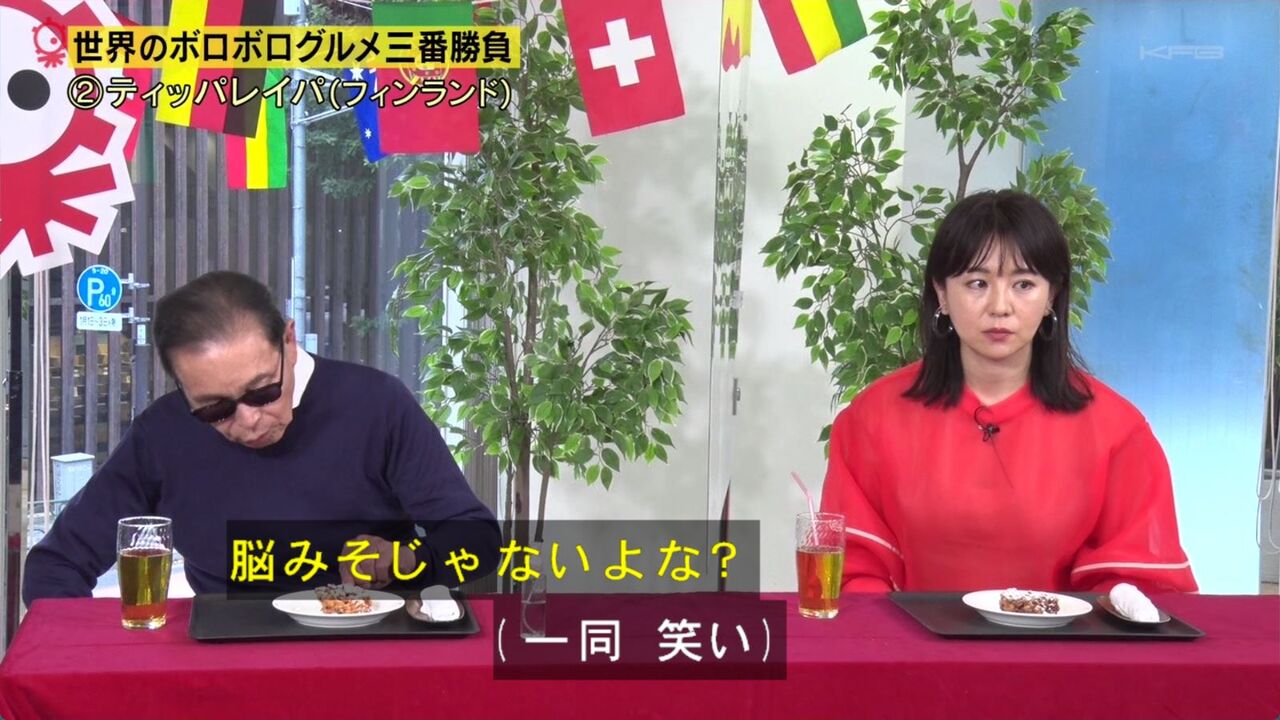 タモリ、口で落ちそうになるビーフンを阻止。